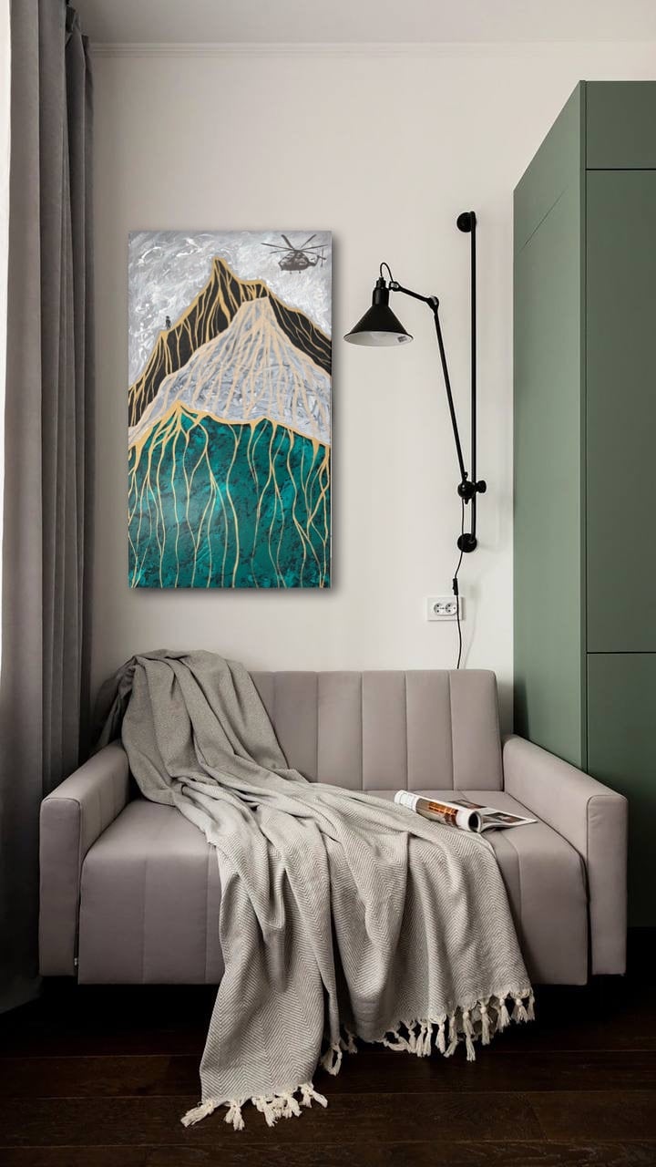 Холст, акрил, 70х40, подвесы установлены.