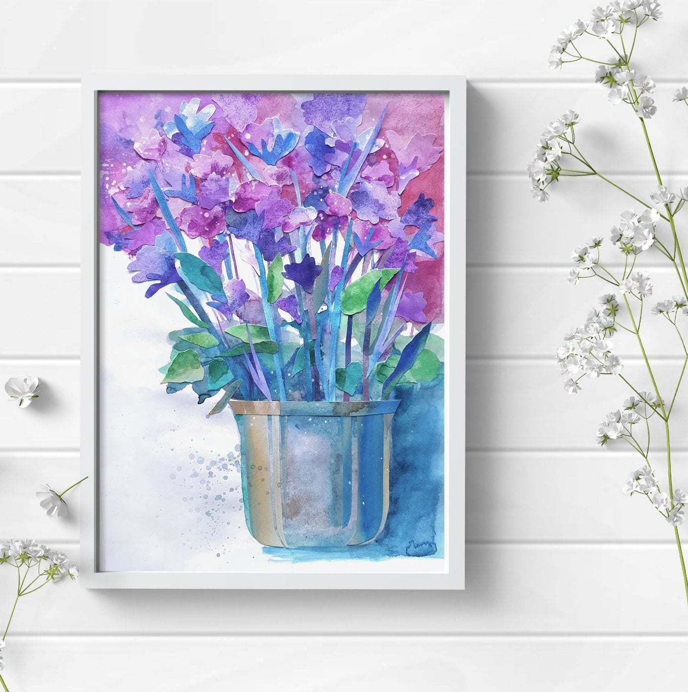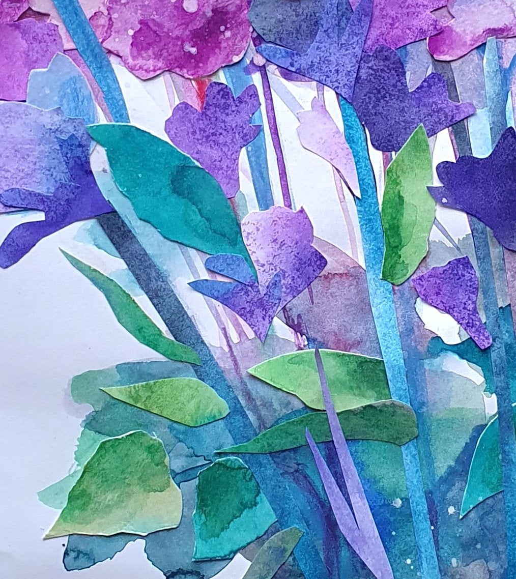 Необычная техника акварельного коллажа. Работа выглядит объемной.