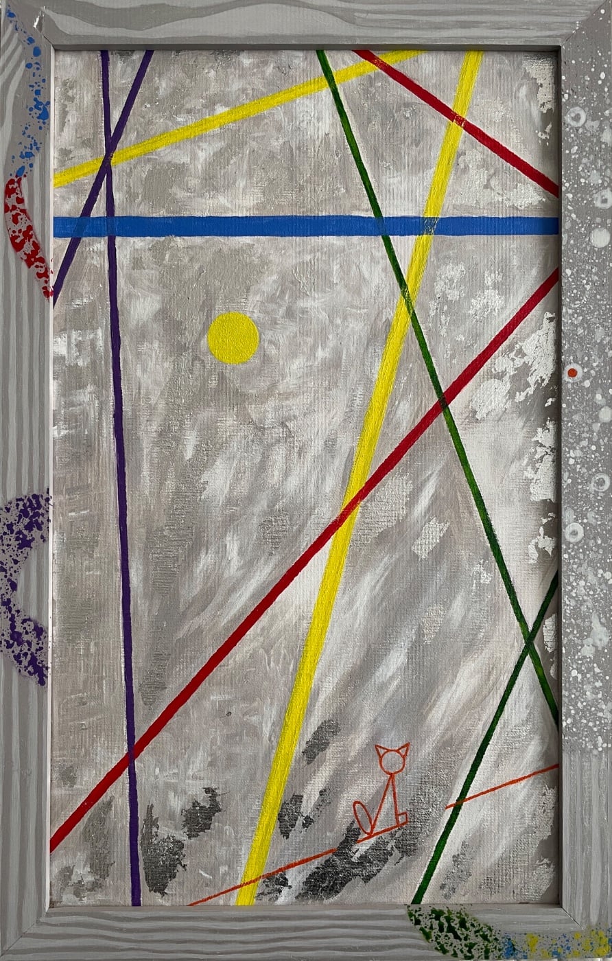«Веселая геометрия» - почти абстракция, элементы могут быть узнаваемы при рассмотрении. Или ваша фантазия достроит собственный сюжет.