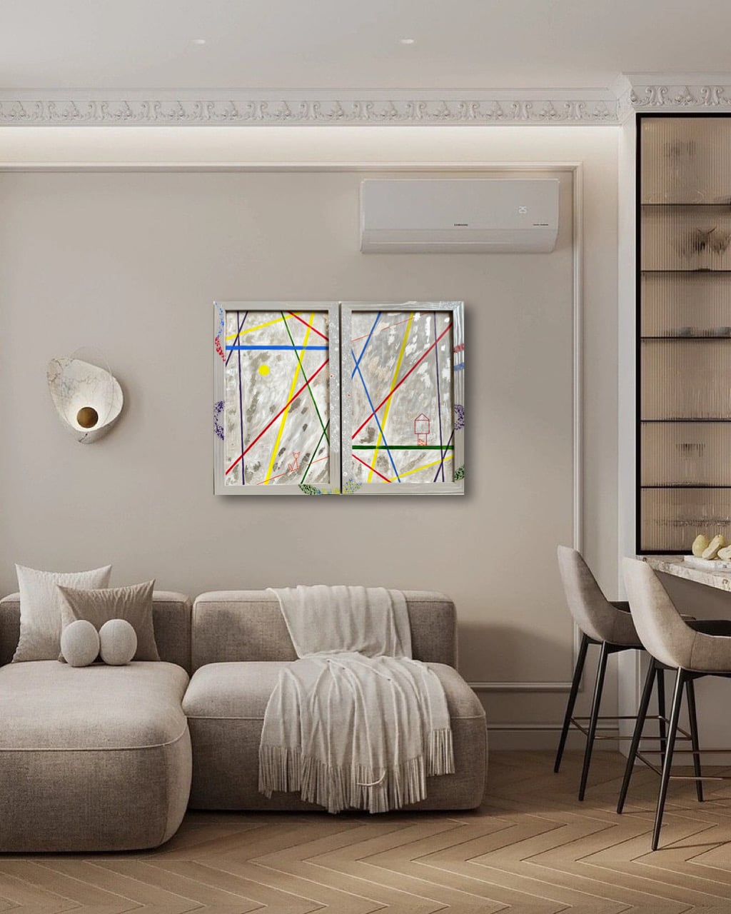 Диптих, холст, акрил с добавлением потали. Каждая часть диптиха без рамы - это холст на картоне 50х30 см.